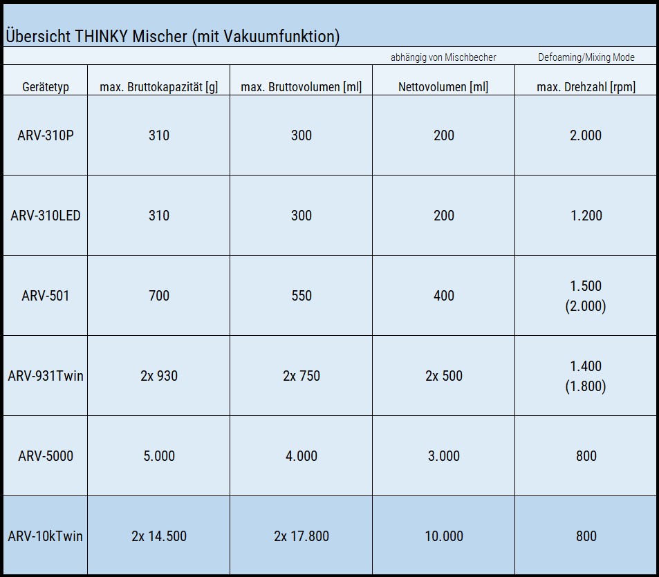Um Gasblasen unter 10µm bzw. bei höheren Viskositäten zu entfernen (z.B. bei Epoxy-Harzen, Silikonen oder anderen, schnell aushärtenden Klebesystemen) wird herkömmlich auf externe Vakuumkammern und einen getrennten Arbeitsschritt zurückgegriffen. Ein wesentlicher Vorteil der Thinky-Vakuum-Mischer besteht darin, dass der Anwender in einem Schritt und demselben Behälter mischen und entgasen kann. Durch das kontinuierliche Umwälzen der Probe erhöht sich die Effektivität des Entgasens zudem beträchtlich. Häufig ist der Unterschied erst unter dem Mikroskop sichtbar.