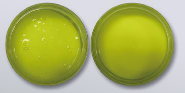 Um Gasblasen unter 10µm bzw. bei höheren Viskositäten zu entfernen (z.B. bei Epoxy-Harzen, Silikonen oder anderen, schnell aushärtenden Klebesystemen) wird herkömmlich auf externe Vakuumkammern und einen getrennten Arbeitsschritt zurückgegriffen. Ein wesentlicher Vorteil der Thinky-Vakuum-Mischer besteht darin, dass der Anwender in einem Schritt und demselben Behälter mischen und entgasen kann. Durch das kontinuierliche Umwälzen der Probe erhöht sich die Effektivität des Entgasens zudem beträchtlich. Häufig ist der Unterschied erst unter dem Mikroskop sichtbar – hier lohnt sich ein genauerer Blick!
