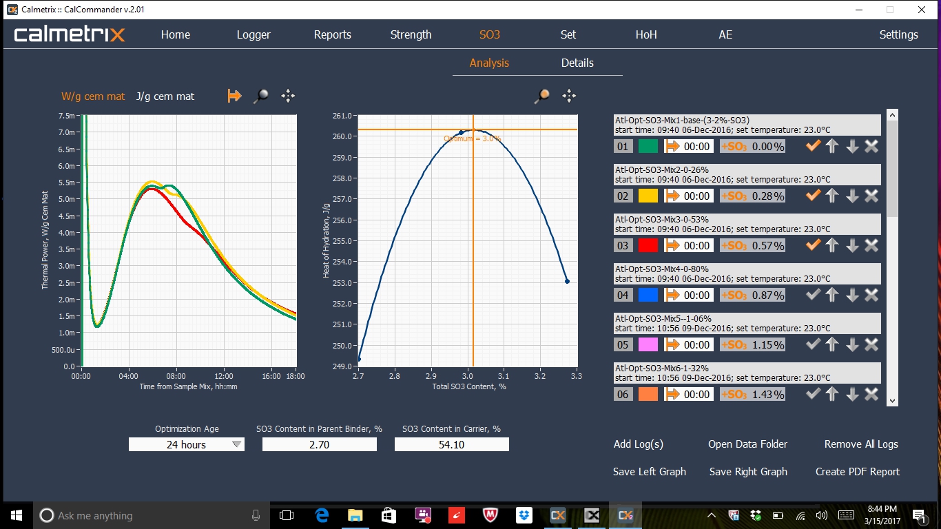 Calmetrix CalCommander I-Cal SO3: I-Cal SO3 ist eine Anwendung, die kalorimetrische Wärmeflusskurven zur Sulfatoptimierung von Zement verwendet. Sie basiert auf der Norm ASTM C563 und verwendet die Hydratationswärme als Proxy für die Druckfestigkeit.