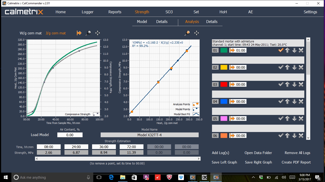1. Vorhersage der Druckfestigkeit ohne physikalische Prüfung. Das Softwaremodul I-Cal Strength hilft dabei, die Korrelation zwischen der kalorimetrischen Wärmeflusskurve einer bestimmten Mischung und den Druckfestigkeitswerten des abgebundenen / ausgehärteten Materials herzustellen. Diese Korrelation wird dann verwendet, um die Druckfestigkeit jedes Mal vorherzusagen, wenn Tests mit demselben Mischungsdesign durchgeführt werden.