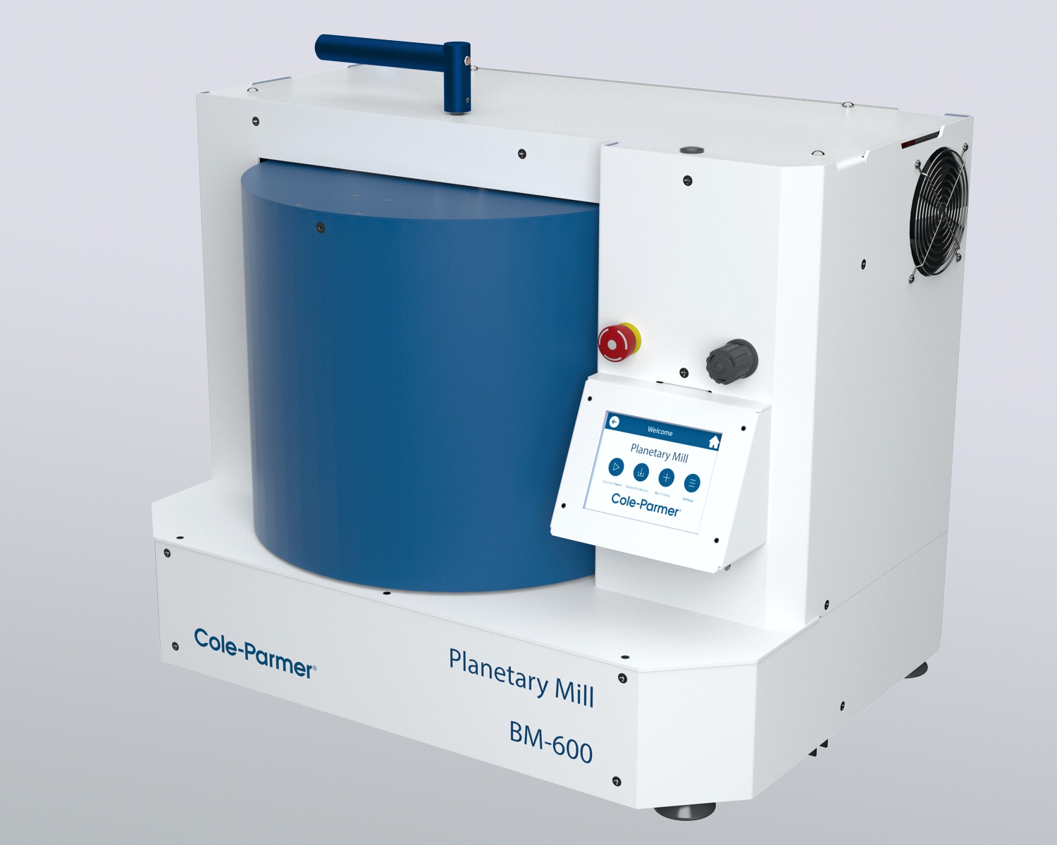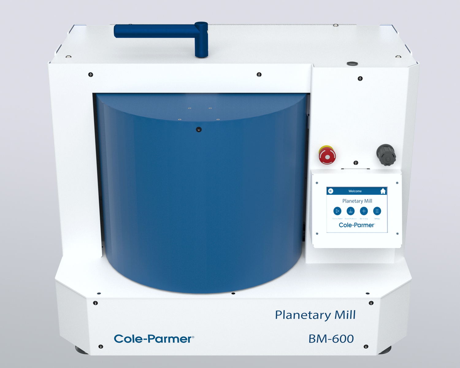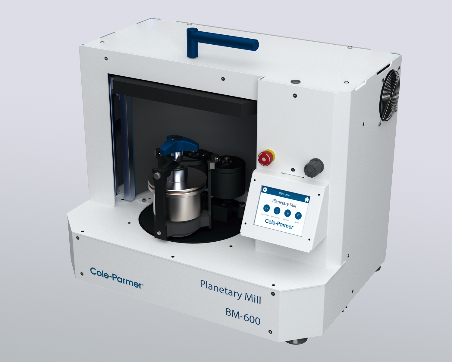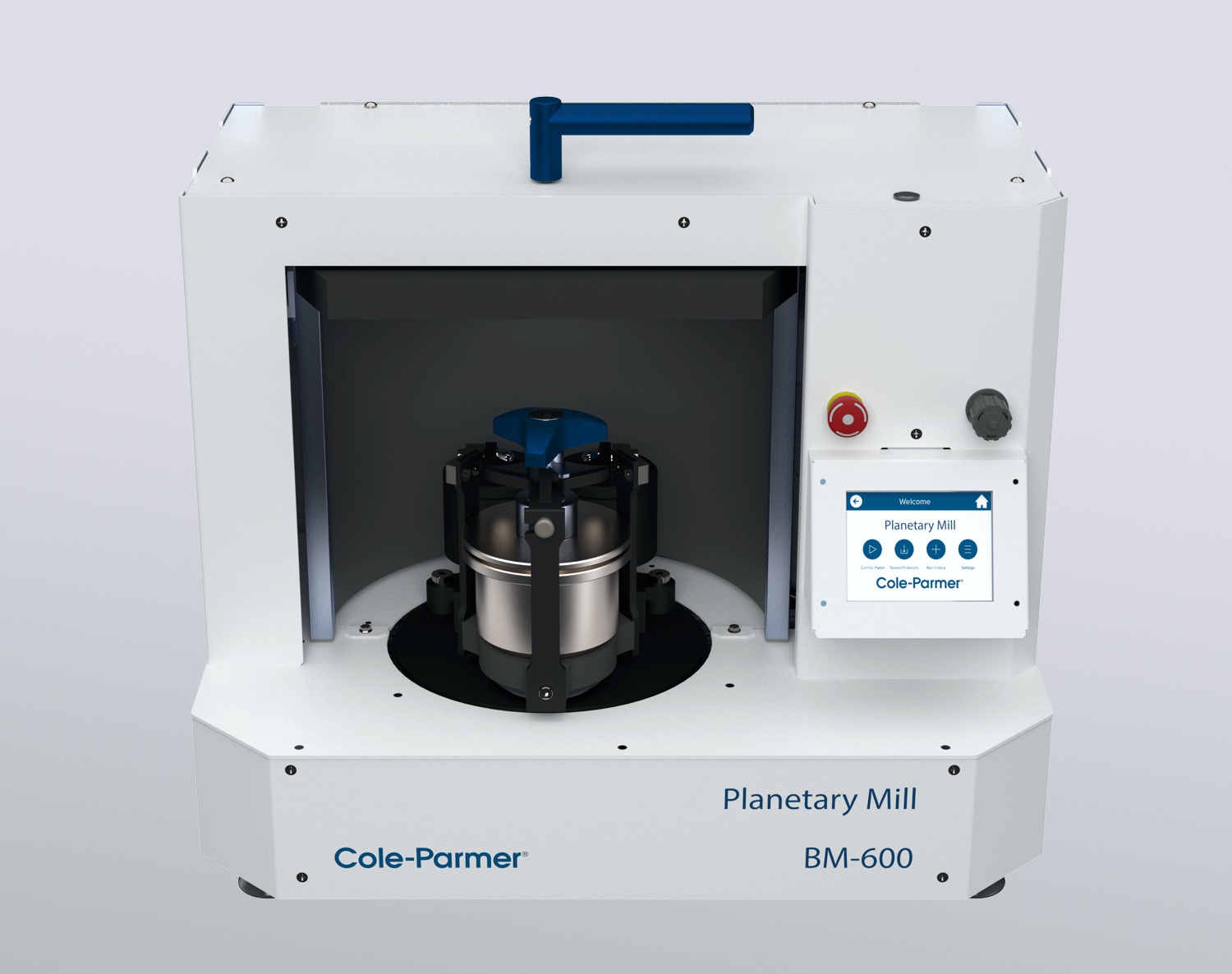 Mit der BM-600 Planetary Mill von Cole-Parmer können 50-225g Probenmaterial pro Durchgang gemahlen werden, hierfür stehen zehn individuell konfigurierbare Mahlprogramme zur Verfügung. Abhängig von der Härte der Probe sind hierfür Mahlwerkzeuge und Mahlkugeln entweder aus rostfreiem Edelstahl oder gehärtetem Stahl verfügbar. Zum Schutz des Anwenders verfügt das Gerät über eine Sicherheitsverriegelung. Das ergonomische Design ermöglicht das einfache Beladen der Mühle mit dem Mahlwerkzeug.