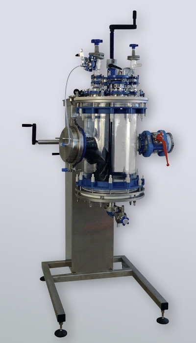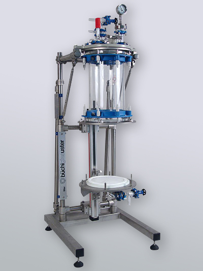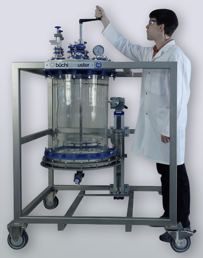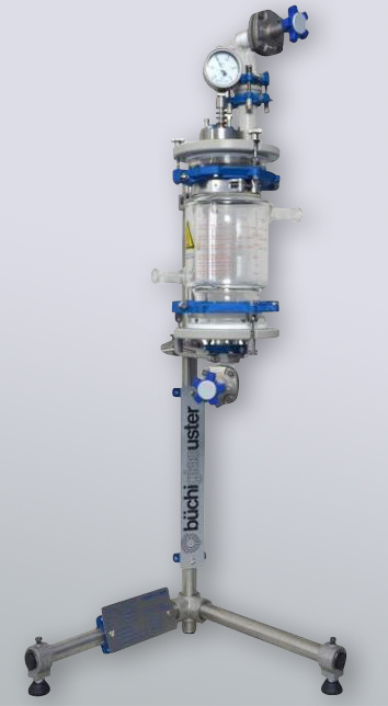 • MiniPilot: Der MiniPilot (2-15 Liter) ist ein Glasreaktor (Glasrührsystem) welcher zum Ausrühren, Extrahieren, Phasentrennen, Homogenisieren, Aufkonzentrieren, usw. genutzt werden kann. Die Glasapparatur befindet sich in einem soliden Edelstahlgestell.