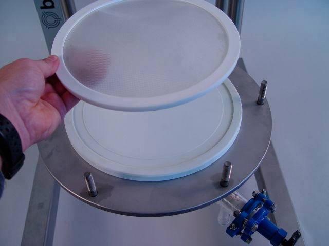 Die produktberührenden Bauteile der Nutsche, egal ob flüssigkeitsberührend oder gasberührend sind standardmäßig metallfrei ausgeführt. Hauptmaterialien welche Ihr Produkt (Chemie) berühren sind Glas, Emaille, PTFE, PEEK oder PFA. Somit ist der Einsatz in Pharma- und Elektronik- (Halbleiter)- Industrie möglich.