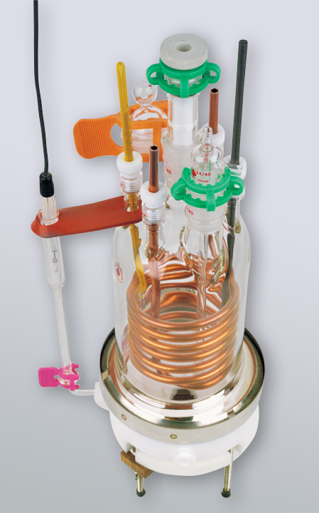 Anschluss Inertgasspülung, Rührer und Reagentienzugabe: 3 x Normschliff 24/40