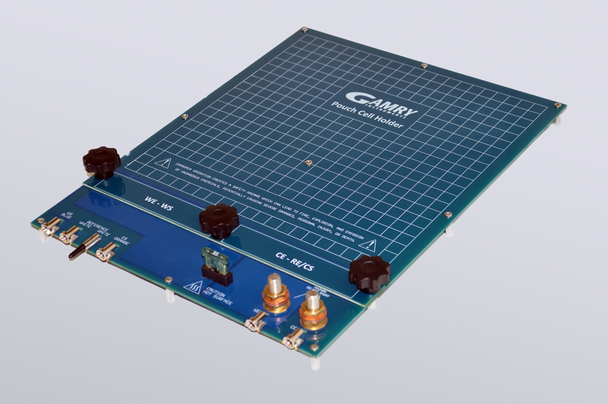 Jeder der beiden Pouchzell-Kontakte besitzt zwei voneinander isolierte Kontakte für jeweils unabhängige Aufprägung des Stromes und der Messung der Spannung. Dieses stellt eine reproduzierbare Kontaktierung und die Vermeidung von Messfehlern durch die Kontaktwiderstände sicher. Die Auslegung der stromführenden Kontakte sowie die zugrundeliegende Leiterplatte ist für bis zu 30 A konzipiert, damit auch der Reference 3000 (AE) incl. Reference 30k Booster mit der Batterie-Halterung für Pouchzellen verwendet werden kann.