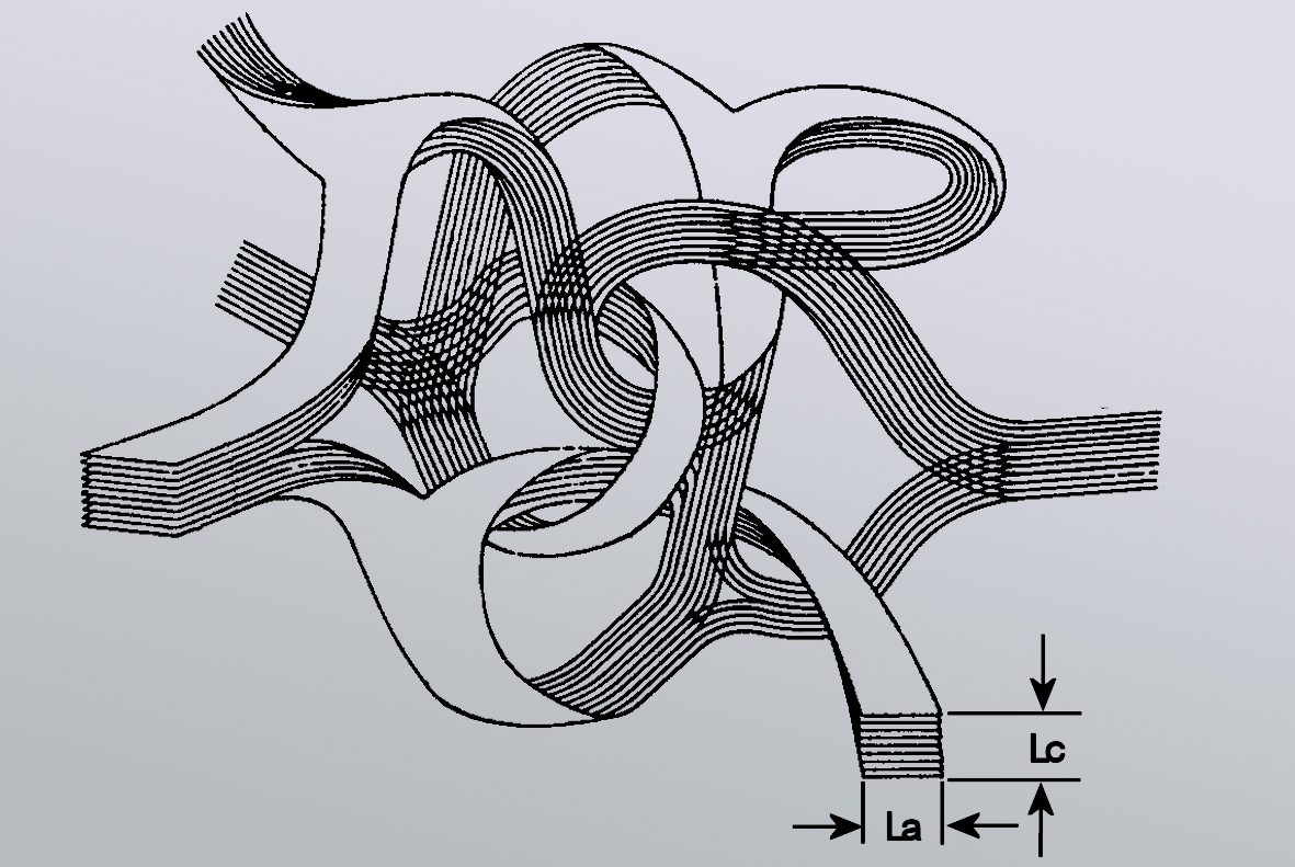 Er vereint Eigenschaften wie glasartige Härte mit denen von Graphit. Allerdings besitzt er im Gegensatz zu Graphit eine stark fehlgeordnete Mikrostruktur aus Basalebenen und Kanten (basal and edge-plane).