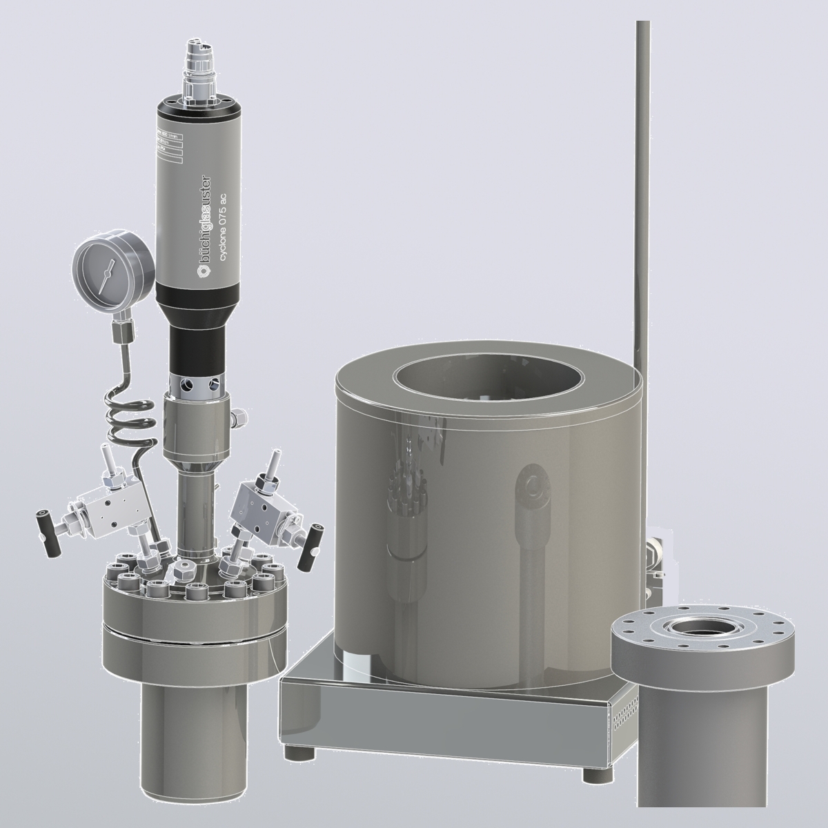 Der Büchi novoclave Hochdruckreaktor ist für extreme Bedingungen von bis zu 500 bar und bis zu 500°C ausgelegt. Für superkritische Reaktionen, Hydrierungen, Material- und Katalysatortests sind Reaktoren zwischen 100 und 600 ml verwendbar. Temperiert werden die Reaktoren über eine elektrische Heizung mit PID Regler und magnetventilgesteuerter Wasserkühlung.