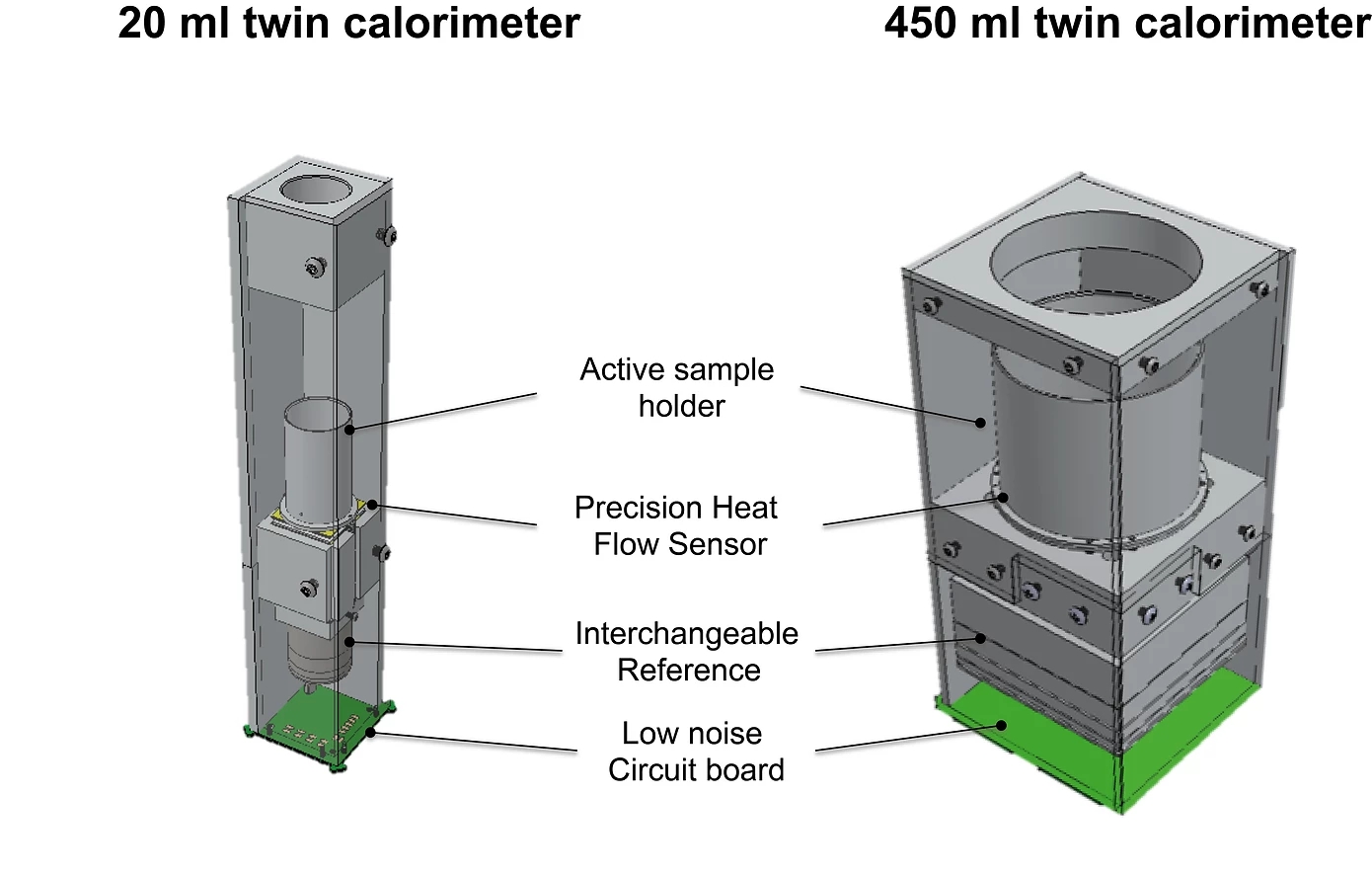 Für den Bereich Life Science bieten sich bei Wunsch nach größeren Volumina als 20ml die zwei Calmetrix Biokalorimeter Typ Biocal 2000 mit zwei Messpositionen bzw. das Biocal 4000 mit vier Messpositionen und jeweils 125 ml Probenvolumen an.