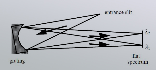Wird der Gitteraufbau bei der Herstellung (holographisch) so korrigiert, dass die Fokusse verschiedener Wellenlängen auf einer Ebene liegen spricht man von Flat-Field Gittern. Dieses „Image“ kann dann von einem modernen Detektor Array schnell und einfach erfaßt werden. Dieser Gittertyp wird daher sehr häufig in modernen Spektrometern verbaut.