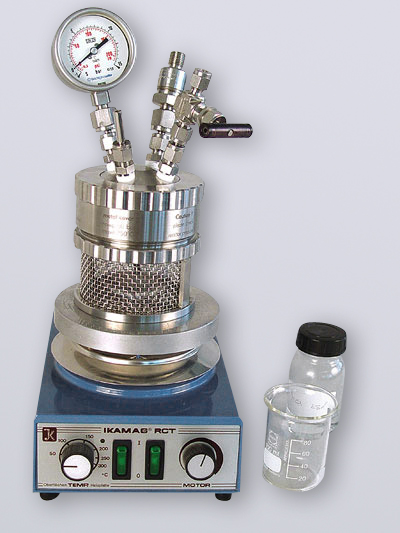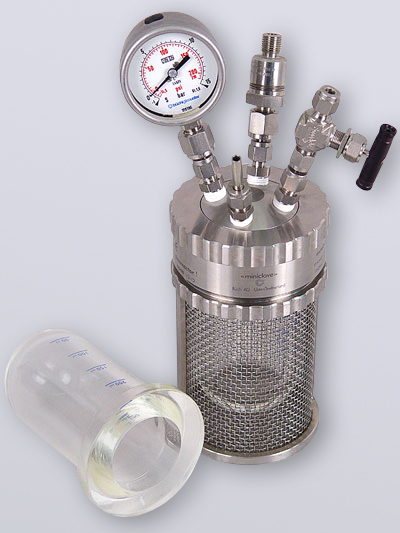 • Miniclave inert, universeller Druckreaktor, der mit verschiedenen austauschbaren Glasreaktoren betrieben werden kann. Sämtliche benetzten Materialien sind „nicht-metallisch“ und chemisch inert.