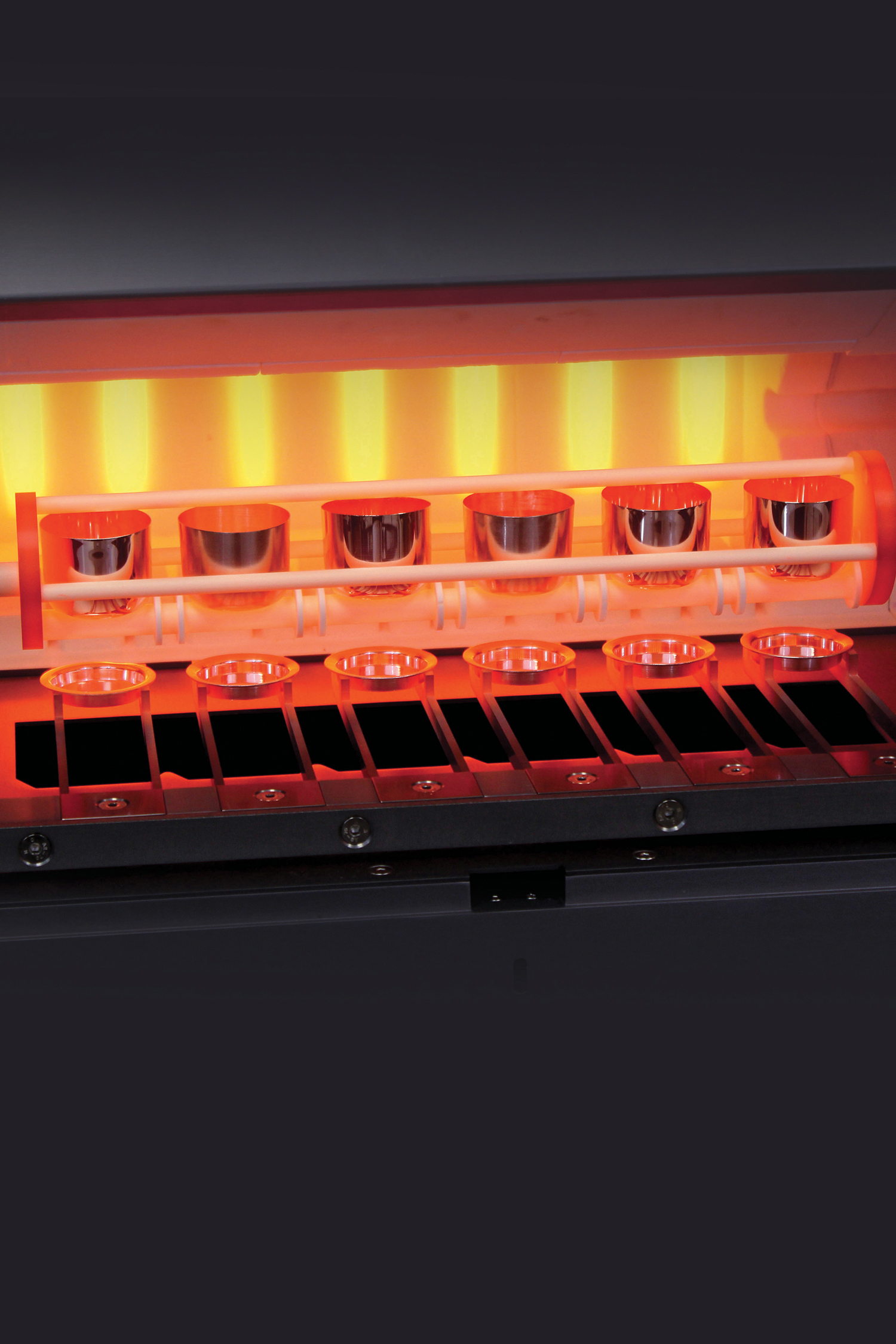 • Integrierte Rührstation mit 6 Positionen inkl. 6 Teflonbecher mit Magnetrührern für die Herstellung von bis zu 6 Säureaufschlüssen z.B. für die ICP-OES / ICP-MS (Option, wird werksseitig integriert)