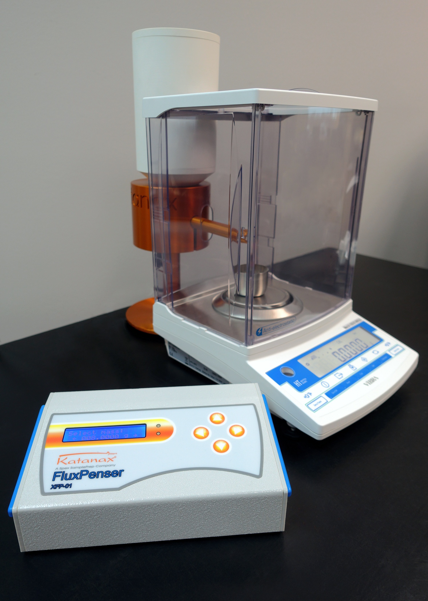 Der automatischer Dispenser Katanax XFP-01 FluxPenser® – Schmelzmittel präzise und reproduzierbar einwiegen – inklusive Waage und LIMS-Kompatibilität.