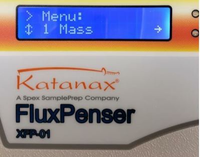 Für die Einwaage des Schmelzmittels kann zwischen zwei Betriebsarten gewählt werden. Im Falle der Herstellung von Lösungen für eine nachfolgende ICP-Analyse wird in der Regel die Einwaage einer definierten, fixen Menge an Schmelzmittel bevorzugt. Hierbei wird immer exakt dieselbe Menge dosiert (z.B.: 8 Gramm). Die zweite, für die Herstellung von Schmelztabletten bevorzugte Betriebsart, ermöglich das Einwiegen von Schmelzmittel in einem fixen Verhältnis zur Probe (z.B.: 1 zu 8). Hierbei wird die einzuwiegende Menge an Schmelzmittel automatisch vom FluxPenser® errechnet und an die eingewogene Menge an Probe angepasst. Fehler beim Berechnen der Schmelzmittelmenge werden somit vermieden. Die gewünschte Betriebsart wird einfach auf Tastendruck an der Bedieneinheit ausgewählt. Das Schmelzmittel muss für sie automatische Dosierung als Granulat oder in Form von Kügelchen (pre-fused Beads) vorliegen, für die Einwaage von pulverförmigem Schmelzmittel ist der FluxPenser® nicht geeignet. Generell erfolgt die Einwaage mit einer Genauigkeit von 1mg, das Bereitstellen einer geeigneten Waage durch den Anwender ist nicht nötig. Auch ein Umfüllen des Schmelzmittels mit der Gefahr einer Kontamination oder ein Nachfüllen eines Vorratsbehälters entfällt, da das Originalgebinde des Schmelzmittels gleichzeitig als Vorratsbehälter dient. Hierdurch wird auch die unbeabsichtigte Verwendung einer nicht geeigneten Schmelzmittelmischung effizient vermieden. Nach Abschluss des Wiegevorganges können die Daten zur Dokumentation und Weiterverarbeitung direkt an die Software des RFA-Gerätes oder aber auch direkt an das LIMS (Labor-Informations-System) übergeben werden.
