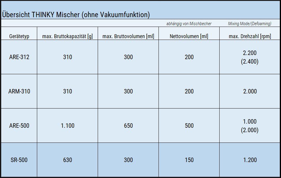 Der Thinky SR-500 ermöglicht das hocheffiziente Mischen ohne Rührer. Typische Bearbeitungszeiten liegen bei wenigen Minuten. Durch die Drehbewegung wird die Probe zudem effektiv entgast.