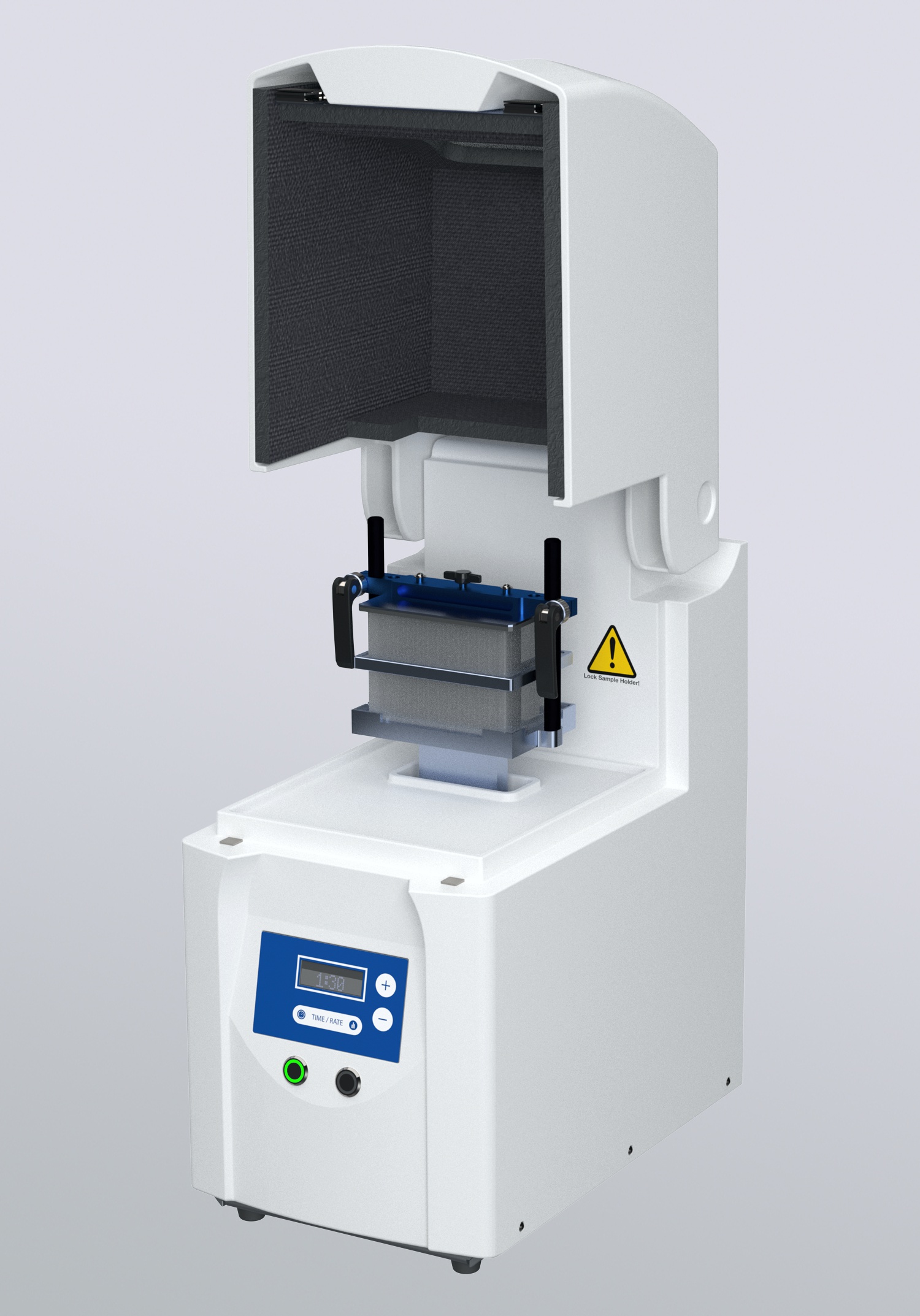 Die Zellaufschluss-Mühle Cole-Parmer HG-400 MiniG® bietet ein Monitoring des Aufschlusses durch Sichtkontrolle während des gesamten Prozesses. Die Aufschlussprozedur endet automatisch nach abgelaufener Zeit, kann jedoch jederzeit manuell durch den Bediener unterrochen werden. Ein Sicherheitsmechanismus unterbricht sofort den Aufschlussvorgang, sofern versucht wird, den Deckel des Gerätes zu öffnen.